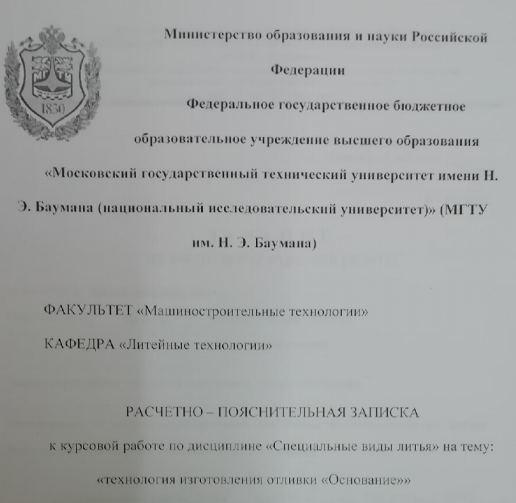 Для студентов МГТУ им. Н.Э.Баумана по предмету Общая технология литейного производстваРазработка технологии изготовления отливки "Основание"Разработка технологии изготовления отливки "Основание"
