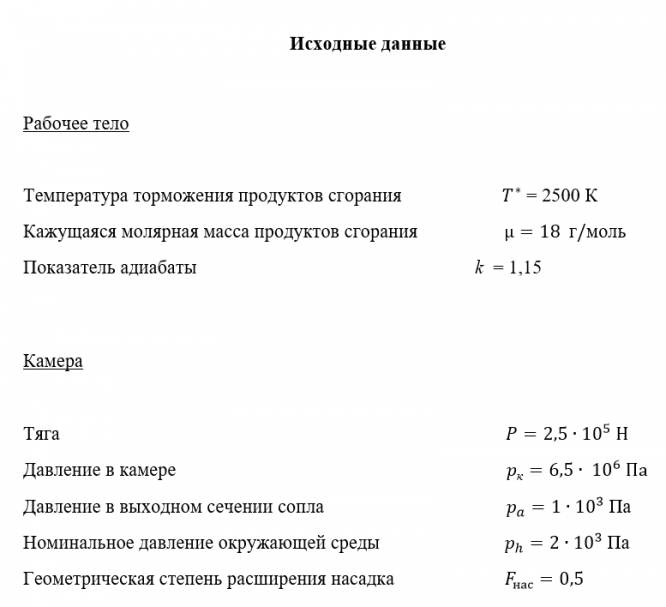 Главная » Учебные материалы » Общая теория ракетных двигателей (ОТРД) » Домашние задания » МГТУ им. Н.Э.Баумана » Несколько классов/семестров » Вариант 11 » Расчет основных параметров и характеристик камеры идеального теплового ракетного двигателя