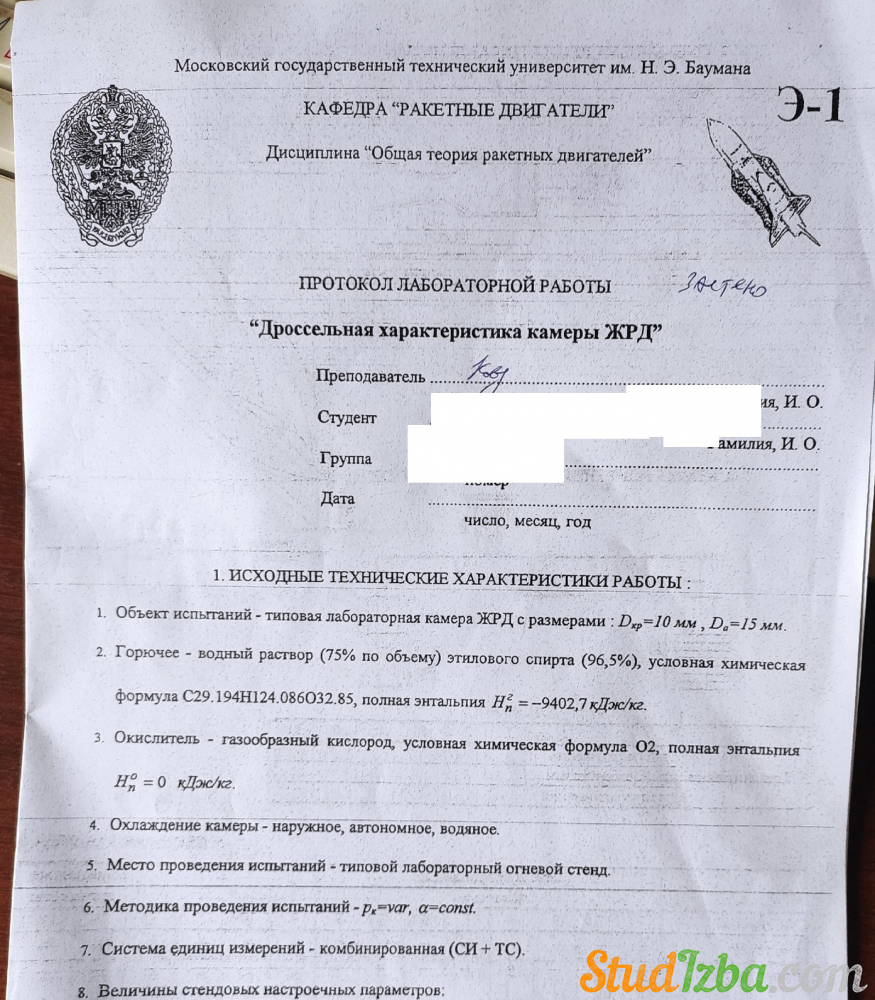 Для студентов МГТУ им. Н.Э.Баумана по предмету Общая теория ракетных двигателей (ОТРД)ЛР №1 "Дроссельная характеристика камеры ЖРД", зачтённаяЛР №1 "Дроссельная характеристика камеры ЖРД", зачтённая