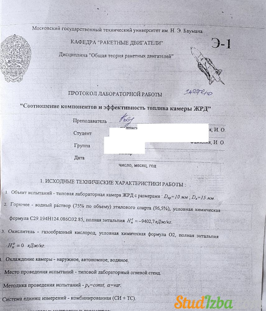 Для студентов МГТУ им. Н.Э.Баумана по предмету Общая теория ракетных двигателей (ОТРД)ЛР №2 "Соотношение компонентов и эффективность топлива камеры ЖРД", зачтённаяЛР №2 "Соотношение компонентов и эффективность топлива камеры ЖРД", зачтённая