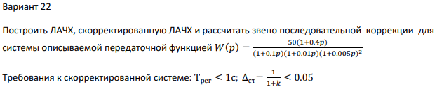 ДЗ: КМ-4 Синтез систем управления вариант 22