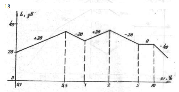 Записать передаточную функцию и построить асимптотическую логарифмическую фазовую частотную характеристику (ЛФЧХ) и амплитудно-фазовую характеристику (АФХ) для минимально-фазовой системы, заданной логарифмической частотной характеристикой (ЛАЧХ):