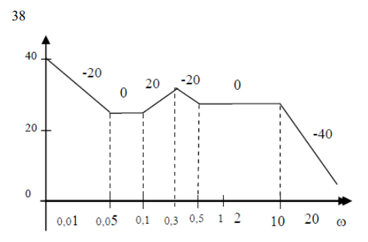 Записать передаточную функцию и построить асимптотическую логарифмическую фазовую частотную характеристику (ЛФЧХ) и амплитудно-фазовую характеристику (АФХ) для минимально-фазовой системы, заданной логарифмической частотной характеристикой (ЛАЧХ):