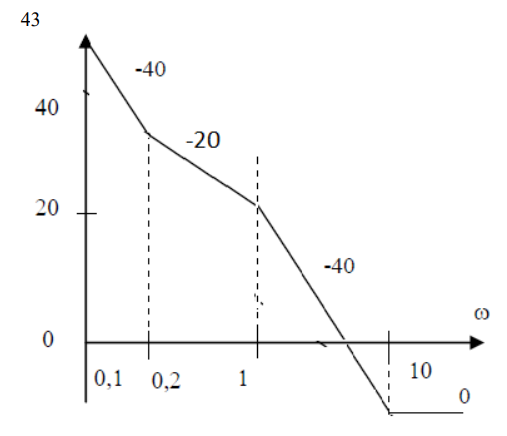 Записать передаточную функцию и построить асимптотическую логарифмическую фазовую частотную характеристику (ЛФЧХ) и амплитудно-фазовую характеристику (АФХ) для минимально-фазовой системы, заданной логарифмической частотной характеристикой (ЛАЧХ):
