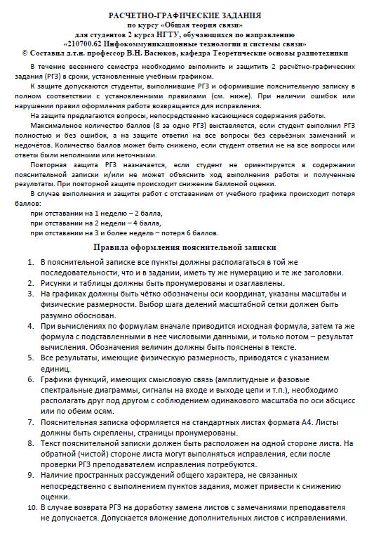 Для студентов НГТУ по предмету Общая теория связи (ОТС)РГЗ - Условие - 2015РГЗ - Условие - 2015