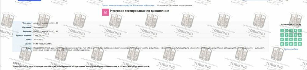 Ответы на все тесты курса "Контроль и оценка эффективности функционирования логистических систем и операций"