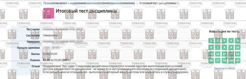 Психология детей с нарушением интеллекта (олигофренопсихология) тест итоговый ответы ВГАПС НИИДПО ответы купить.