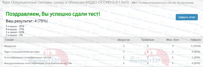 Курс Операционные системы, среды и оболочки - КМ-1. Основы операционных систем. Тестирование