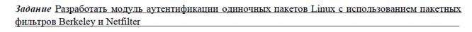Курсовая работа: Модуль аутентификации одиночных пакетов Linux