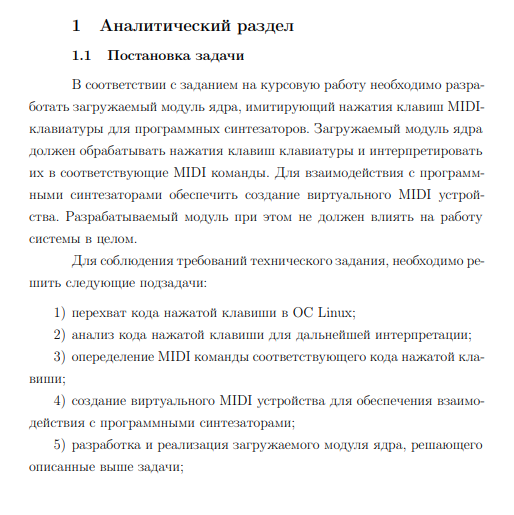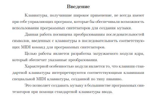 Главная » Учебные материалы » Операционные системы » Курсовые работы » МГТУ им. Н.Э.Баумана » 7 семестр » Загружаемый модуль ядра, имитирующий нажатия клавиш MIDI-клавиатуры для программных синтезаторов