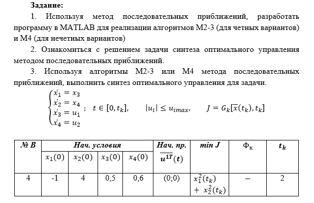 Лабораторная работа: ЛР 3 «Синтез оптимальных систем на основе принципа максимума Л.С. Понтрягина», 4 вар. вариант 4