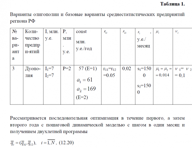 Формирование модели производственно-финансового состояния и целевого показателя предприятий в рамках модели динамической олигополии (вариант №12.3)