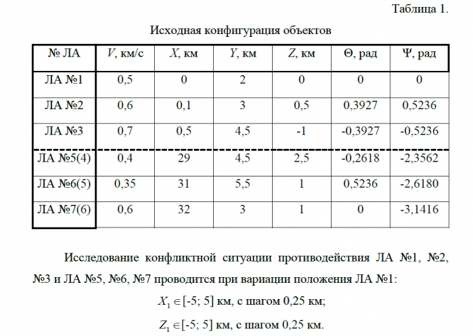Алгоритм конфликтно-оптимального целераспределения-ранжирования звеньев летательных аппаратов (0,5, 0,6, 0,7, 0,4, 0,35, 0,6 км/с)