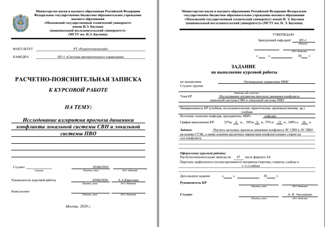 Характеристики курсовой работы