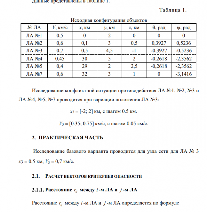 Целью работы является исследование алгоритмов конфликтнооптимального целераспределения летательных аппаратов и алгоритма ранжирования звеньев летательных аппаратов, и получение диаграммы влияния параметров одного из ЛА на вид матрицы целераспределения. Исходя из цели работы, можно выделить несколько основных задач. Проведение полного исследования базового варианта с получением всех промежуточных матриц и результата целераспределения. Получение всех типов матриц целераспределения по заданным узлам сети и представления результата вариации положения одного из ИП в графическом виде на плоскости. По полученному результату сделать выводы влияния изменения положения одного из ЛА на результат целераспределения.