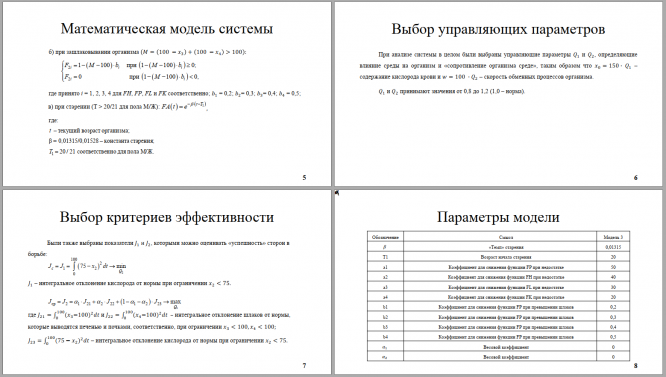В связи с этим представляется интересным исследование компенсационных процессов гомеостаза в живых организмах. Как известно, живой организм – очень сложная система, и создание его адекватной модели – задача не менее сложная, так как необходима модель целостного организма, параметры которой могли бы изменяться со временем, последовательно проходя стадии развития, старения и умирания