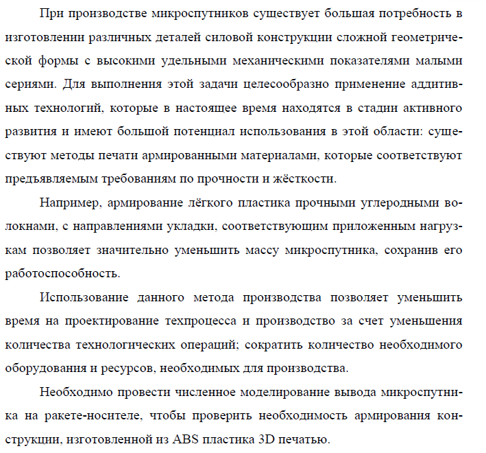 Для студентов МГТУ им. Н.Э.Баумана по предмету Оптимизация композитных конструкций и технологийЧисленный анализ конструкции микроспутника, изготовленного методом 3D-печати на этапе выведения на орбитуЧисленный анализ конструкции микроспутника, изготовленного методом 3D-печати на этапе выведения на орбиту
