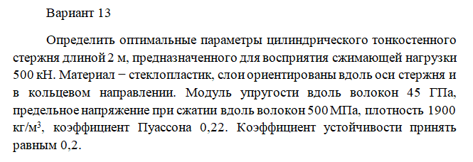 Для студентов МГТУ им. Н.Э.Баумана по предмету Оптимизация композитных конструкций и технологийОпределение оптимальных параметров стержня, работающего на сжатиеОпределение оптимальных параметров стержня, работающего на сжатие