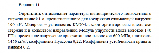 Для студентов МГТУ им. Н.Э.Баумана по предмету Оптимизация композитных конструкций и технологийОпределение оптимальных параметров стержня, работающего на сжатиеОпределение оптимальных параметров стержня, работающего на сжатие