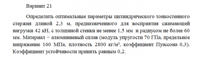 ДЗ: Определение оптимальных параметров стержня, работающего на сжатие вариант 21