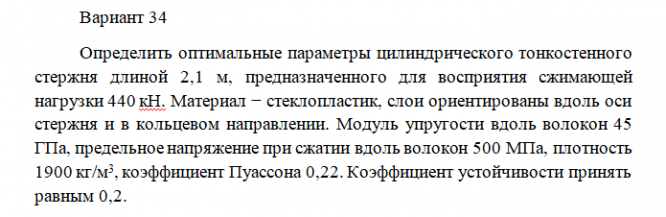 Для студентов МГТУ им. Н.Э.Баумана по предмету Оптимизация композитных конструкций и технологийОпределение оптимальных параметров стержня, работающего на сжатиеОпределение оптимальных параметров стержня, работающего на сжатие