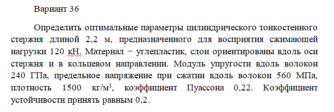 Для студентов МГТУ им. Н.Э.Баумана по предмету Оптимизация композитных конструкций и технологийОпределение оптимальных параметров стержня, работающего на сжатиеОпределение оптимальных параметров стержня, работающего на сжатие