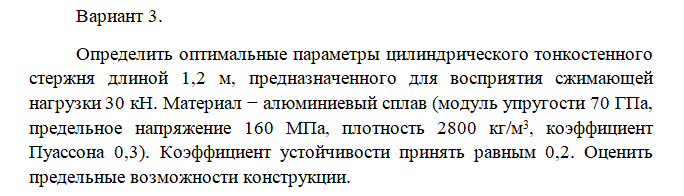 Задача: Определение оптимальных параметров стержня, работающего на сжатие вариант 3
