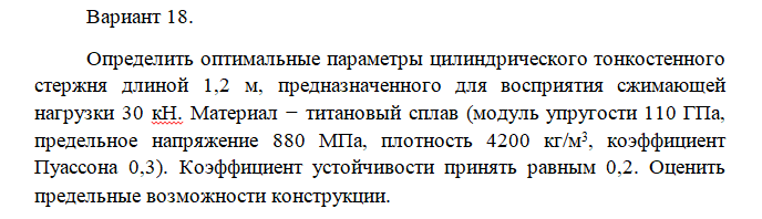 Задача: Определение оптимальных параметров стержня, работающего на сжатие вариант 18