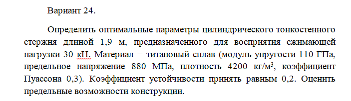 Задача: Определение оптимальных параметров стержня, работающего на сжатие вариант 24
