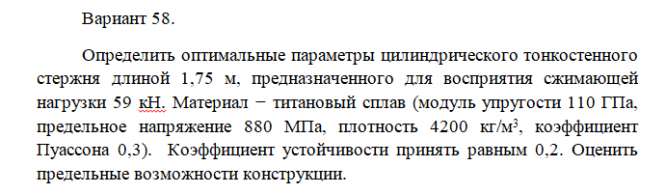 Задача: Определение оптимальных параметров стержня, работающего на сжатие вариант 58