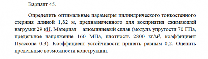 Задача: Определение оптимальных параметров стержня, работающего на сжатие вариант 45
