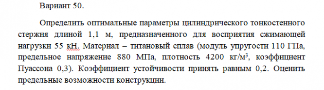 Задача: Определение оптимальных параметров стержня, работающего на сжатие вариант 50