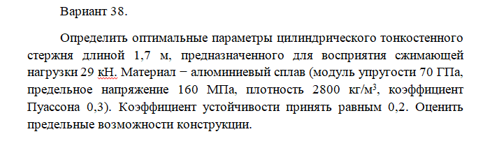 Задача: Определение оптимальных параметров стержня, работающего на сжатие вариант 38