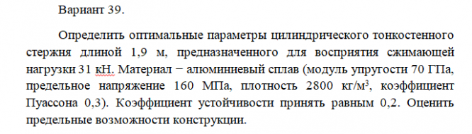 Задача: Определение оптимальных параметров стержня, работающего на сжатие вариант 39