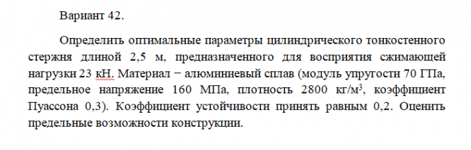 Задача: Определение оптимальных параметров стержня, работающего на сжатие вариант 42