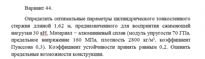 Для студентов МГТУ им. Н.Э.Баумана по предмету Оптимизация композитных конструкций и технологийОпределение оптимальных параметров стержня, работающего на сжатиеОпределение оптимальных параметров стержня, работающего на сжатие