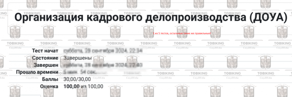 ☀️Ответы на тесты 1-5 "Организация кадрового делопроизводства" | НСПК ДОУА ОСЭК 100% правильно☀️
