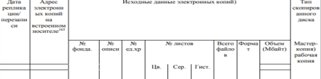 Номер избораженияПример фрагмента акта учета репликаций электронных мастер-копий