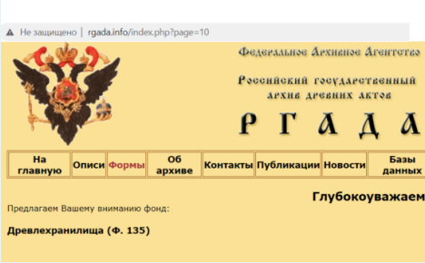 Перед вами фрагмент страницы сайта архива. Определите архив и найдите среди предложенных, адрес главной страницы данного сайта в интернете. Впишите только один правильный ответ