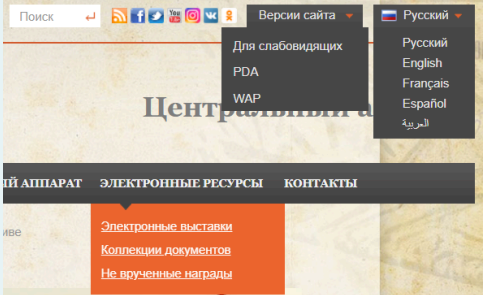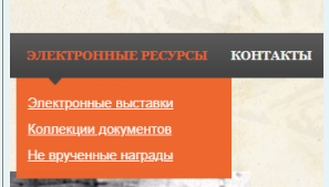 Вы разрабатываете интерфейс сайта архива. На каком из предложенных ниже изображений представлен выпадающий список меню на сайте? Впишите только один правильный ответ.
