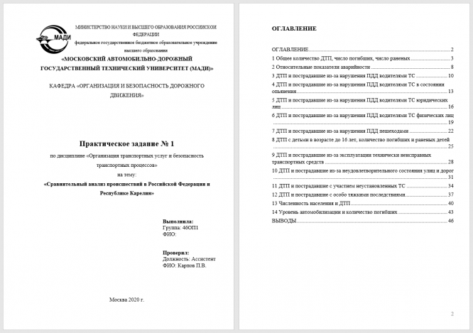 Главная » Учебные материалы » Организация транспортных услуг и безопасность транспортных процессов » Домашние задания » МАДИ » Несколько классов/семестров » На тему: Сравнительный анализ происшествий в Российской Федерации и Республике Карелия