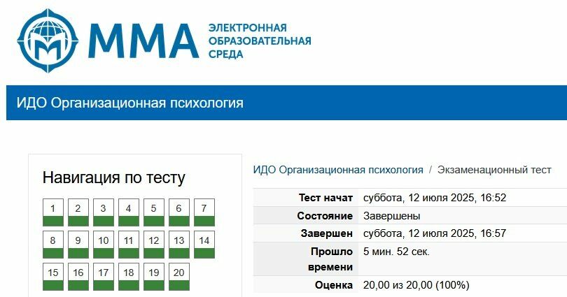 Сборник ответов к экзаменационному тесту Организационная психология ММА.