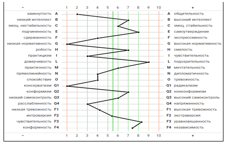 Задание 1. Интерпретировать результаты по представленным данным · Произведите интерпретацию психологического профиля, полученного по методике многофакторного исследования личности Р. Кеттелла (16–PF–форма C). · Интерпретацию оформите в виде отчета (свободная форма). Главное требование – рассмотреть личность целостно.