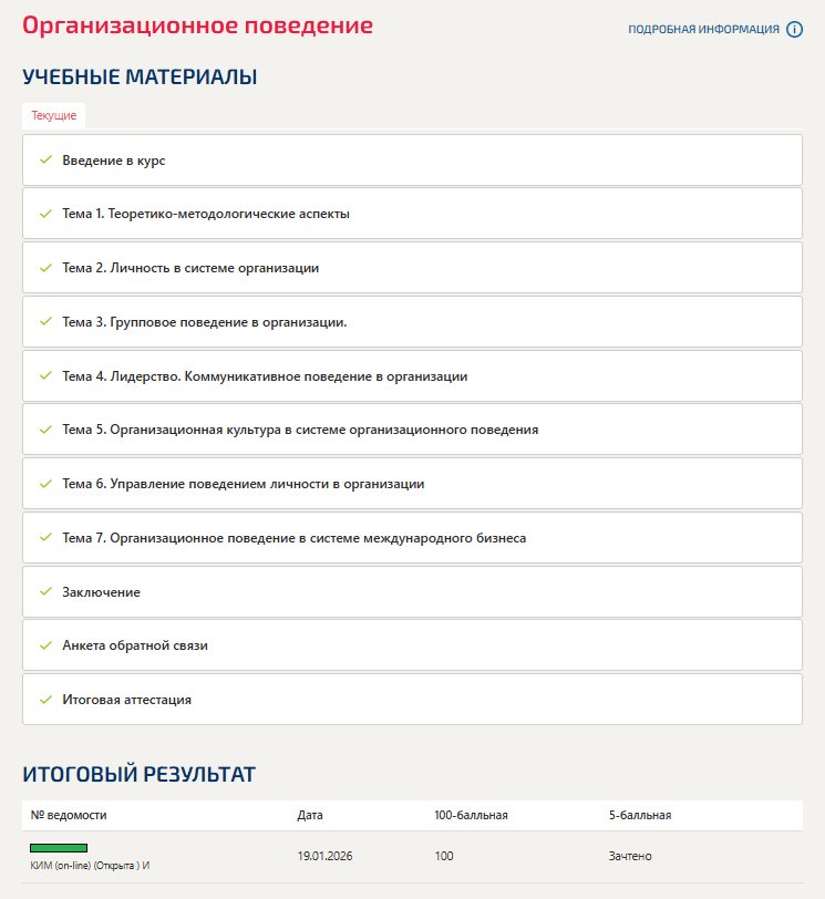 Ответы к зачёту Тесты 1-7, Итоговый: Организационное поведение (Темы 1-7) вариант Компетентностный