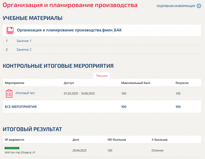 Организация и планирование производства Синергия (Занятие 1-2) Ответы на тест