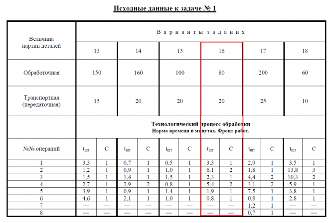 1. Технологический процесс с нормами времени tшт и фронтом работ С по операциям при-ведён в таблице «Исходные данные к задаче № 1 » (в соответствии с номером варианта).