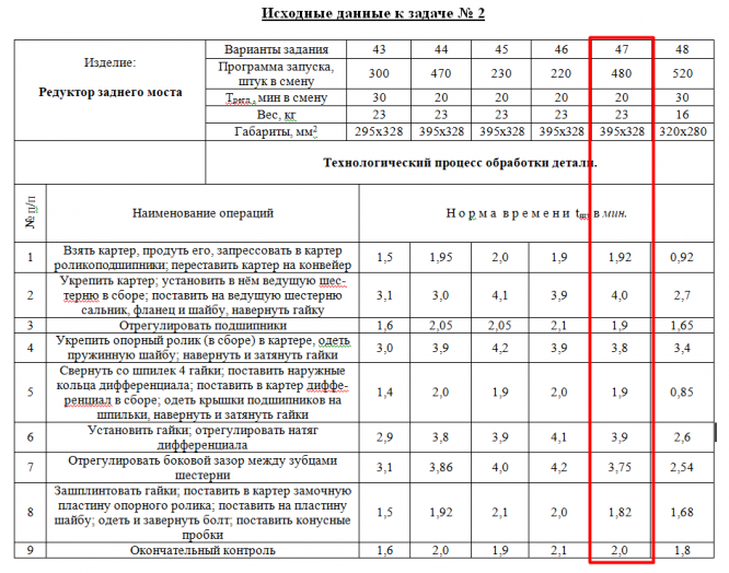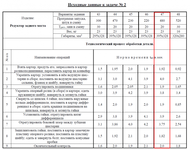 1. Технологический процесс обработки с нормами времени по операциям приведён в таблице «Исходные данные к задаче № 2 » (в соответствии с номером варианта).