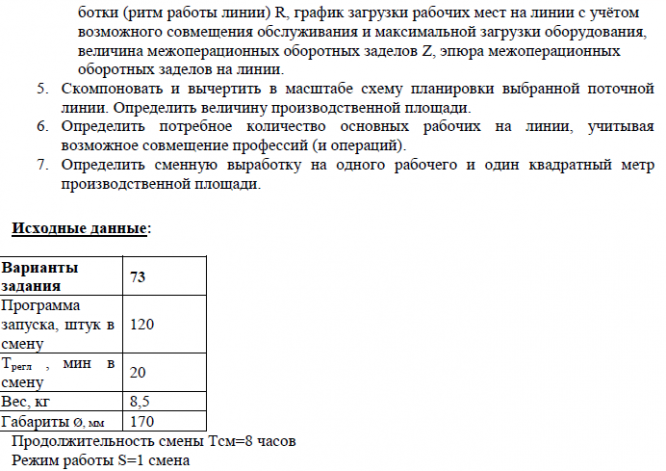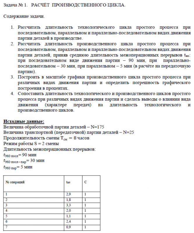 Представлена задача №1 из домашнего задания "Расчет производственного цикла. Расчет и планировка поточной линии"