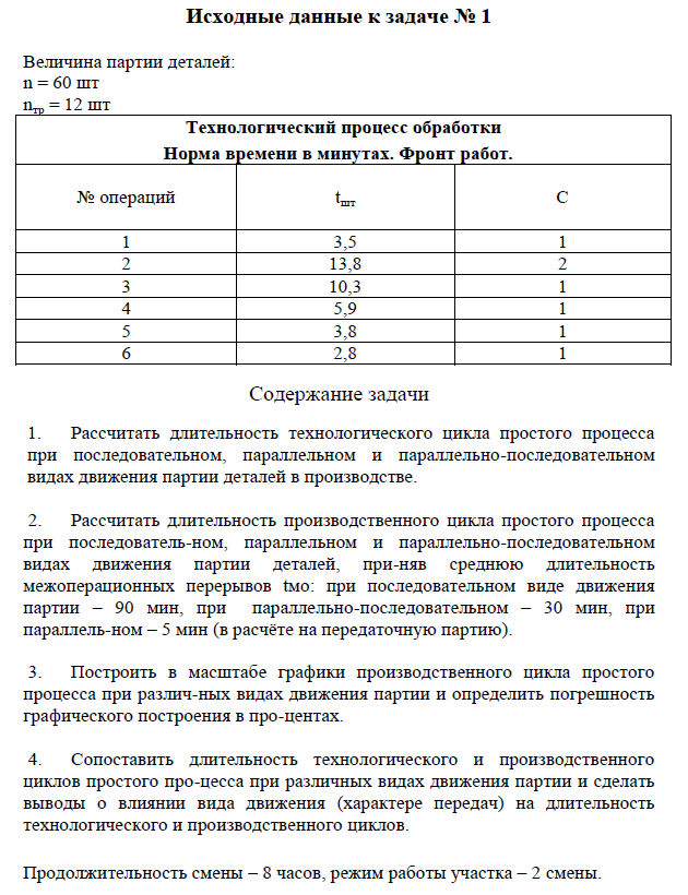 Представлена задача №1 из домашнего задания "Расчет производственного цикла. Расчет и планировка поточной линии"