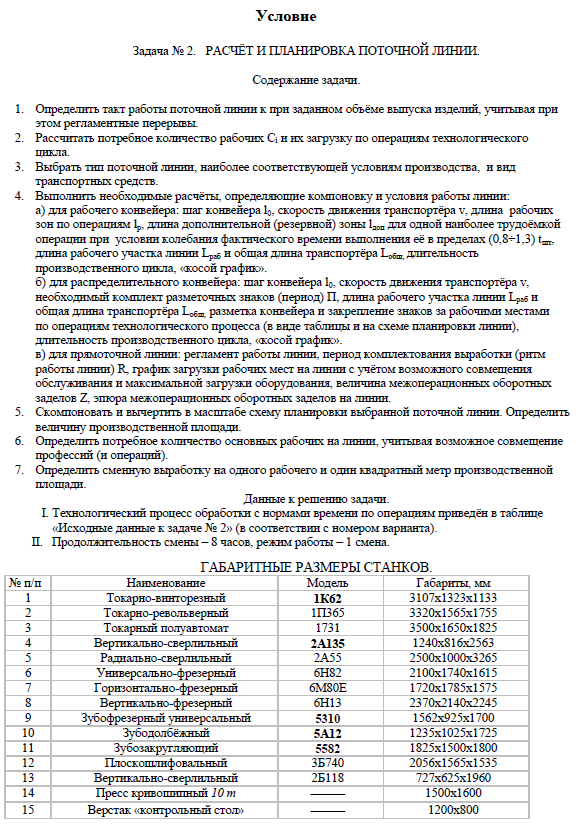 ДЗ 2: Расчёт и планировка поточной линии вариант 63